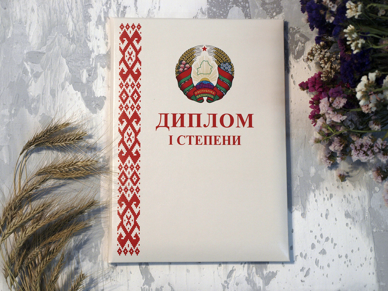 Папка поздравительная белого цвета "Диплом 1 степени" . Нанесено цветное изображение. Внутренние исполнение в позолоте.